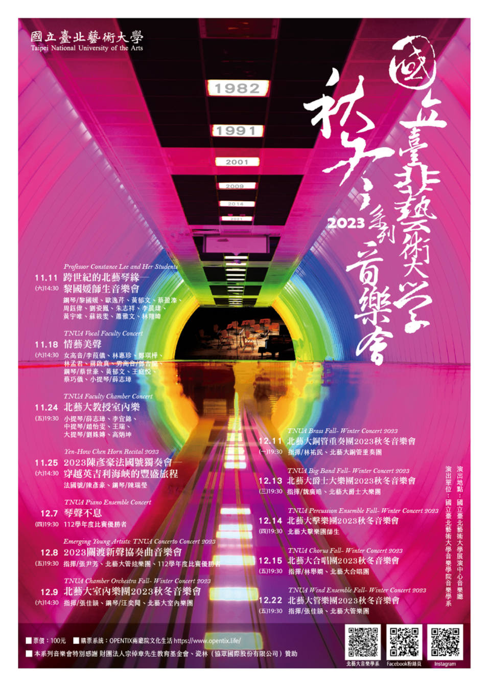 國立臺北藝術大學2023秋冬系列音樂會於11、12月舉行多場音樂會,有興趣可購票到場聆聽!