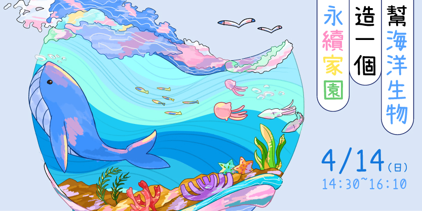 臺北市青少年發展暨家庭教育中心4月14日14:30舉辦壯遊達人開講「幫海洋生物造一個永續家園」,陳映伶老師與您分享她踏上致力於海洋保育的心路歷程, 以及過程中的體驗。活動免費,詳見青發家教中心官網(https://ydfe.gov.taipei/)。