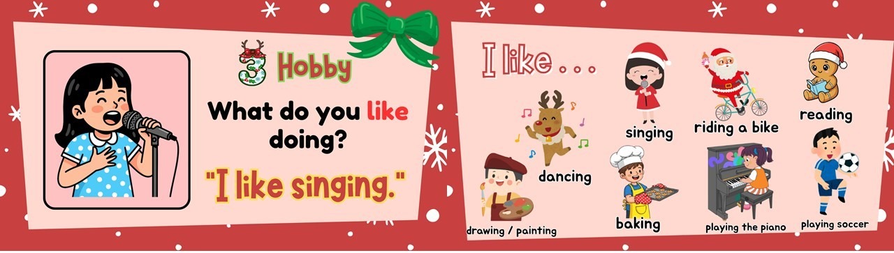 中年級:抽卡片,說出上面的「聖誕節」單字,再翻到背面,回答卡片上的問題,題目共有3組(聖誕禮物、唱聖誕歌和我喜歡…),隨機出現。