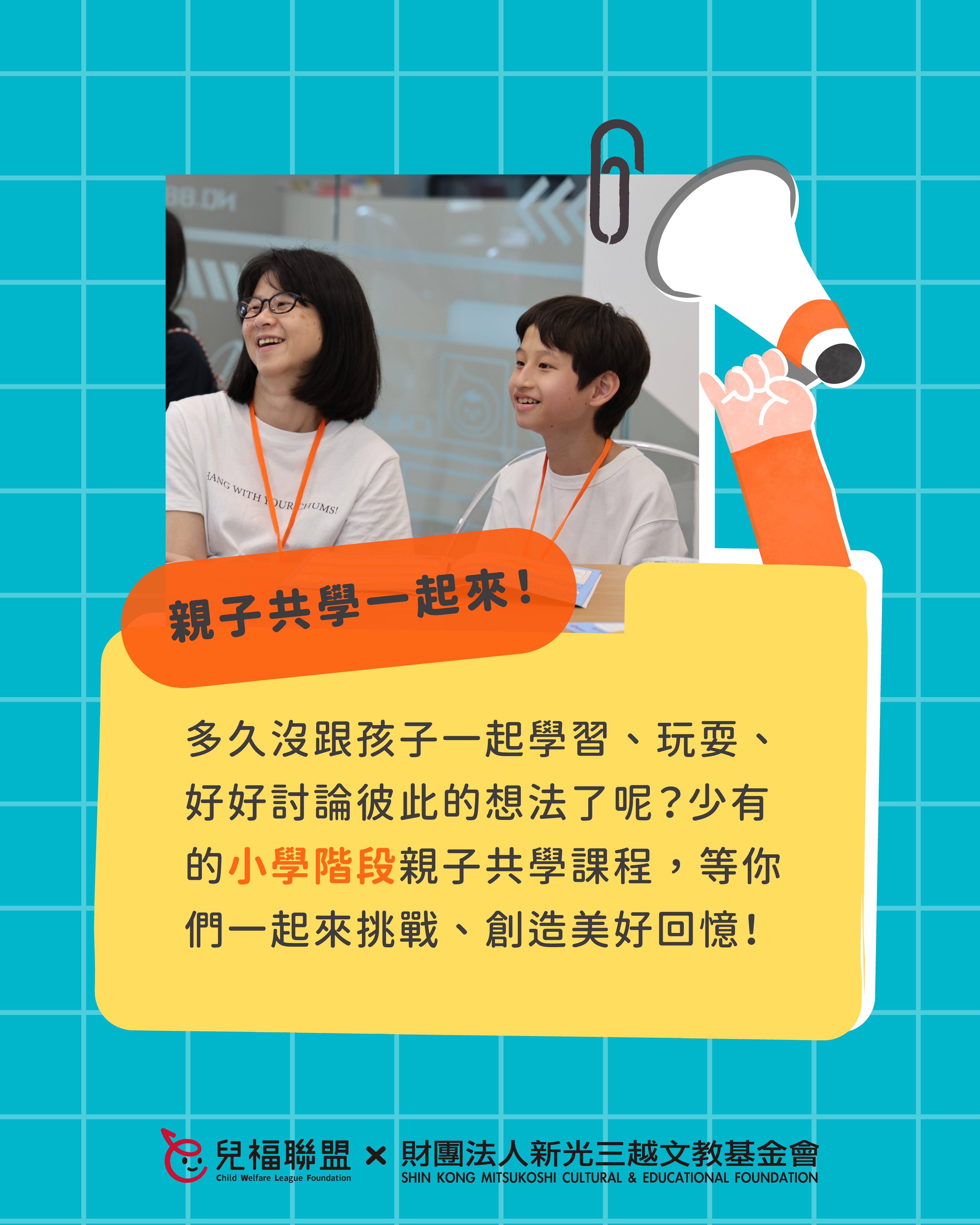 (一)對象:國小三至六年級學生及其同住家長(一位家長搭配一位孩子)共同報名。